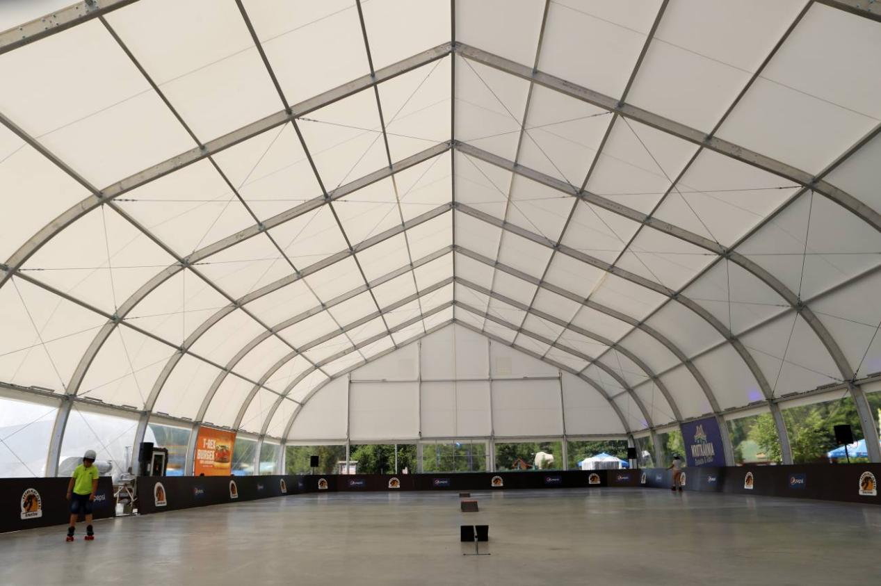 體育賽事篷房的魅力并不全在于外觀,更在于便捷性。對于不同場地的大小,可以自由組合篷房的間數(shù)和不同賽事的需求。對于場地的地面無論是沙地,草地,水泥地還是如大理石那樣不可破壞的地面,體育賽事篷房可以用膨脹螺絲、鋼釬以及承重盤,使篷房能夠安全穩(wěn)固的進(jìn)行搭建和使用,保證體育賽事的順利進(jìn)行。